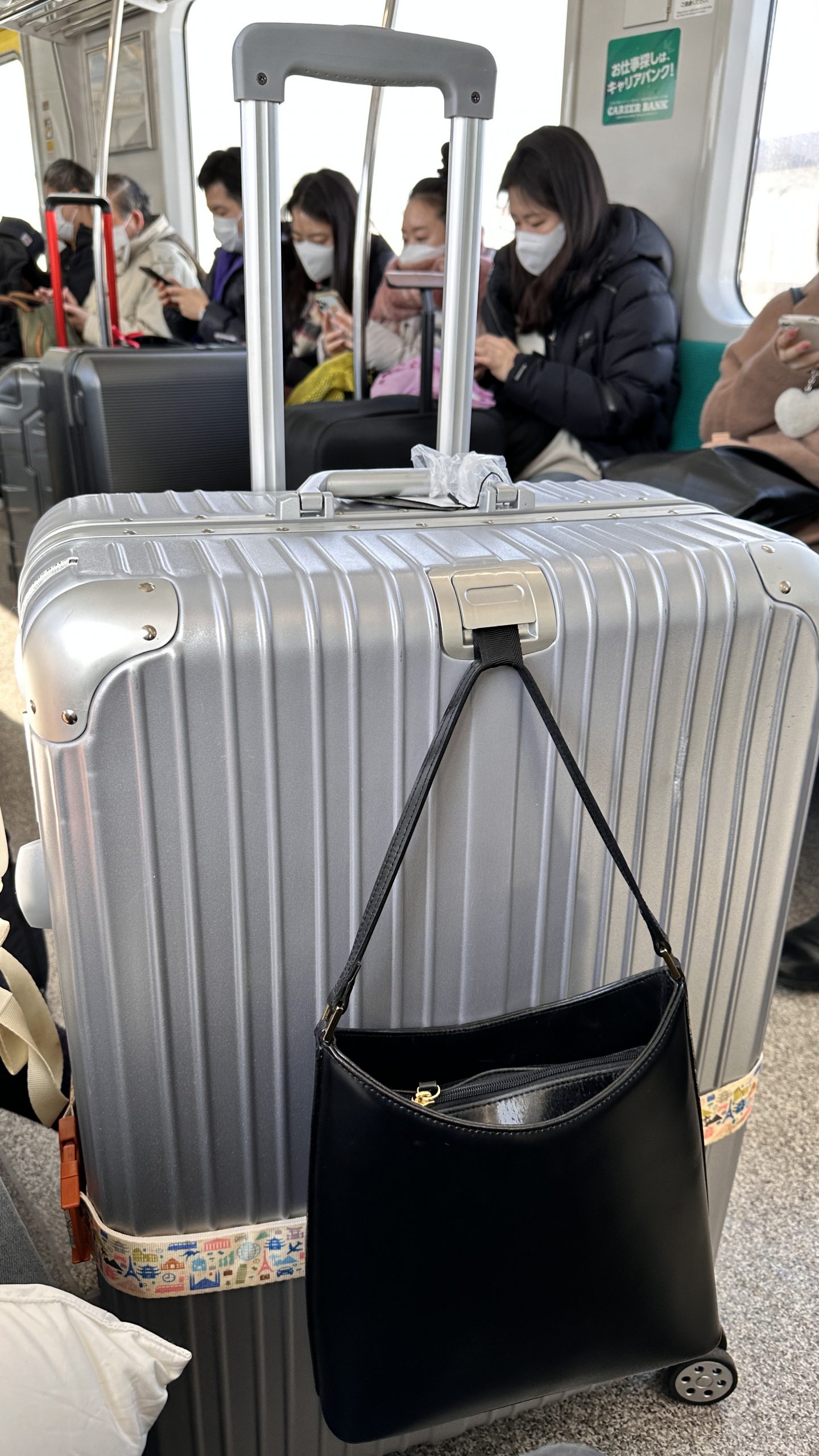 這個隱形拉帶,可以掛包包。很重要很方便!一般的卡在拉桿上,但是很容易掉