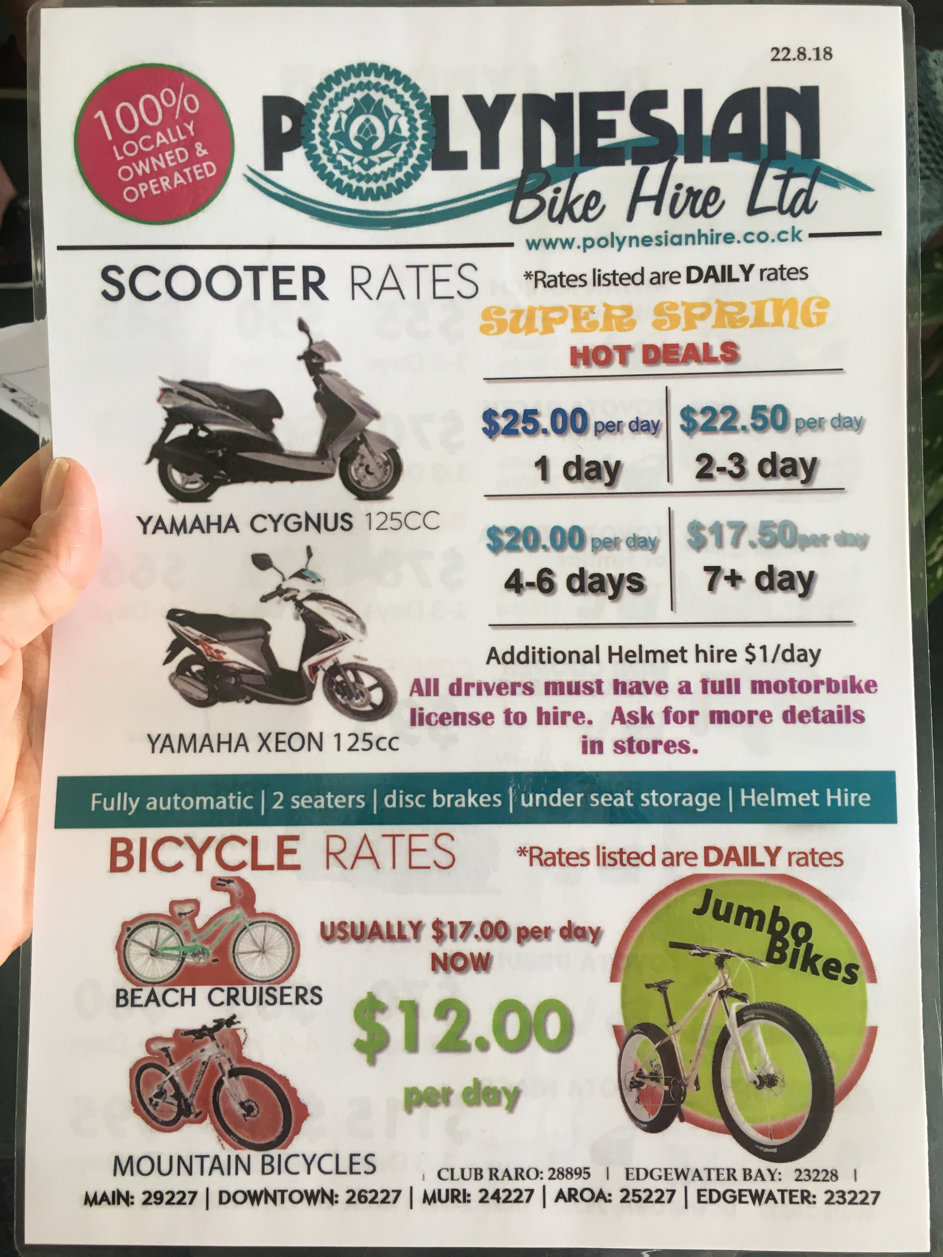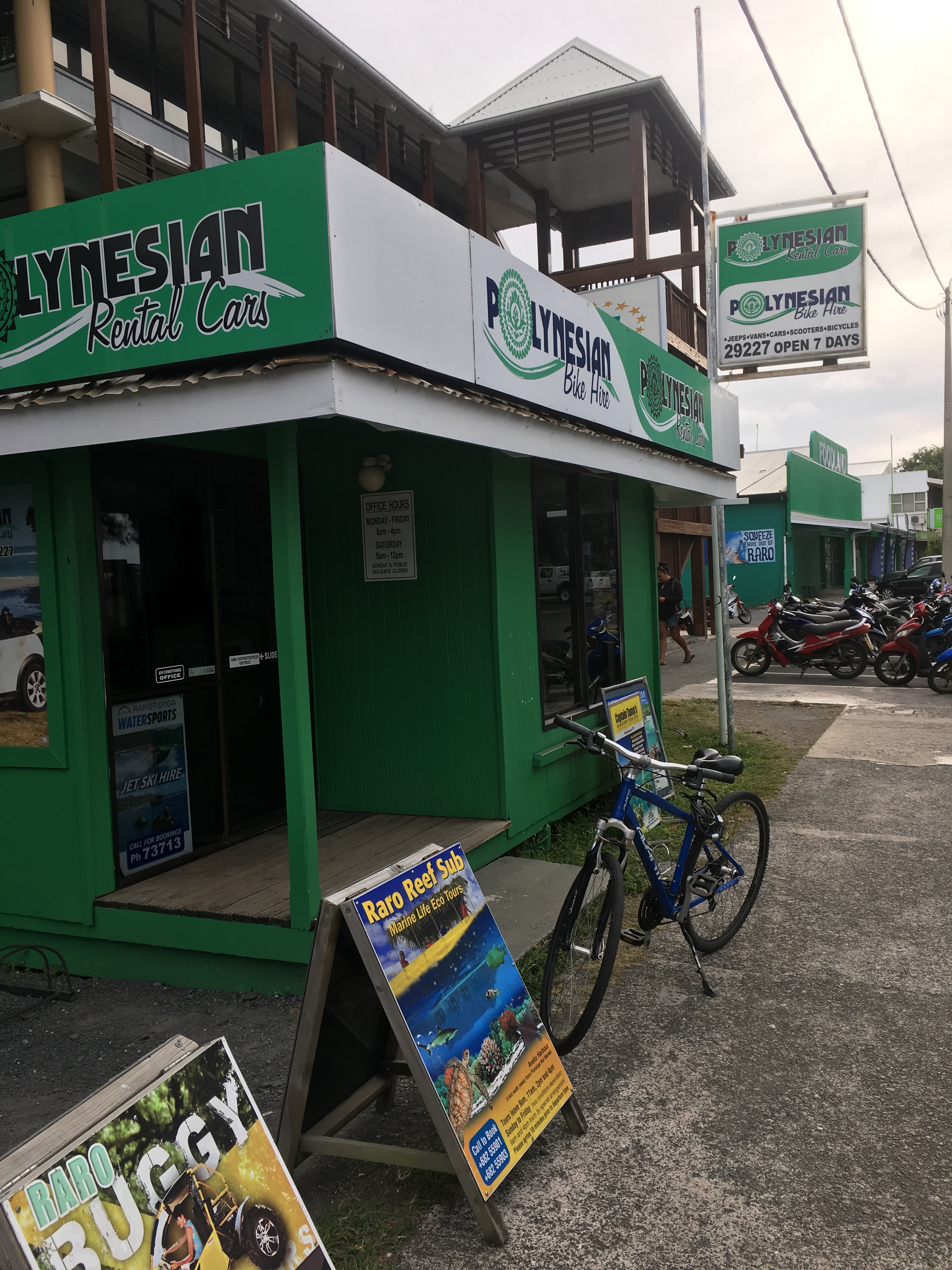 1. 機場附近沒有租機車的店,要到小鎮中心,或是島的東邊muri beach 一帶